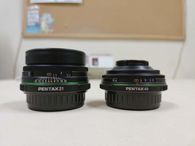 所有レンズの中でこれまで最小だった smc DA 21mm F3.2 Limited とカタログ値で比較してみると、太さが同じで 1cm 短く、50g 軽い。カメラ本体重量まで考慮するなら、過去最軽量の組み合わせだった K-S2 + DA 21mm Ltd. が 818g、片や K-S1 + DA 40mm Ltd. は 648g。その差は 170g で、スマホ1台分ほど軽いことになります。これは明らかに実感できる違いでした。