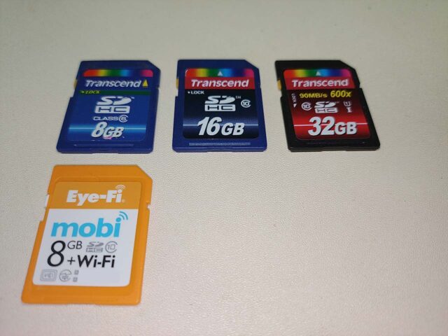 Eye-Fi カード以外 Trancend 製なのは、当時、コスパに優れていたから。今はもう、高機能品以外どのメーカーも値崩れしちゃってますね。Eye-Fi ブランドは、FlashAir に吸収されてから、その後どうなったのやら。もはや専用アプリ経由でどうこうという気も起こらないので、純粋に記録メディアとして利用してます。