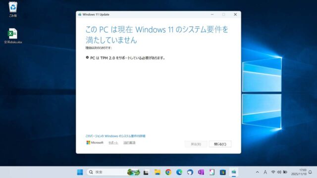 11月、DELL Inspiron 13 の CMOS 電池が切れていたとき、そのまま起動を続けて表示されたのが「Windows 11 のシステム要件を満たしてません」で「PC は TPM 2.0 をサポートしている必要があります」というダイアログ。