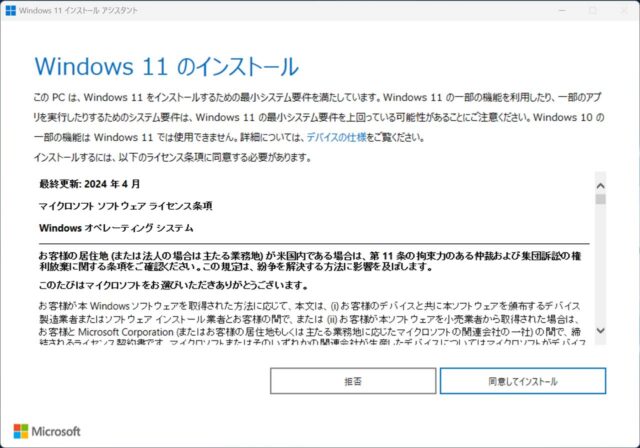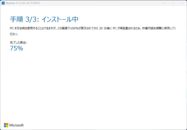 そのまま「インストールアシスタント」から Windows 11 のインストールを開始。