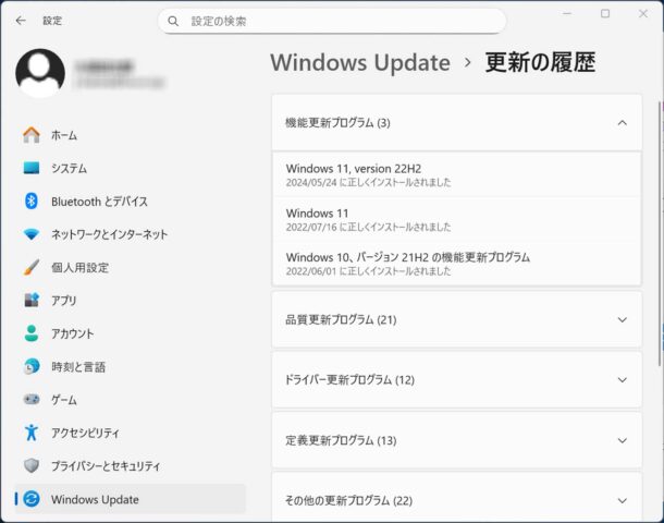 インストール日が作業日と同じなので、うまくアップデートできていた、のだろうけれど、なんだこの、応答性の悪さ。それともあれかな。また寝ている間に自動的にアップデーターが走って完了したのかな。気持ち悪いな、Windows 11。